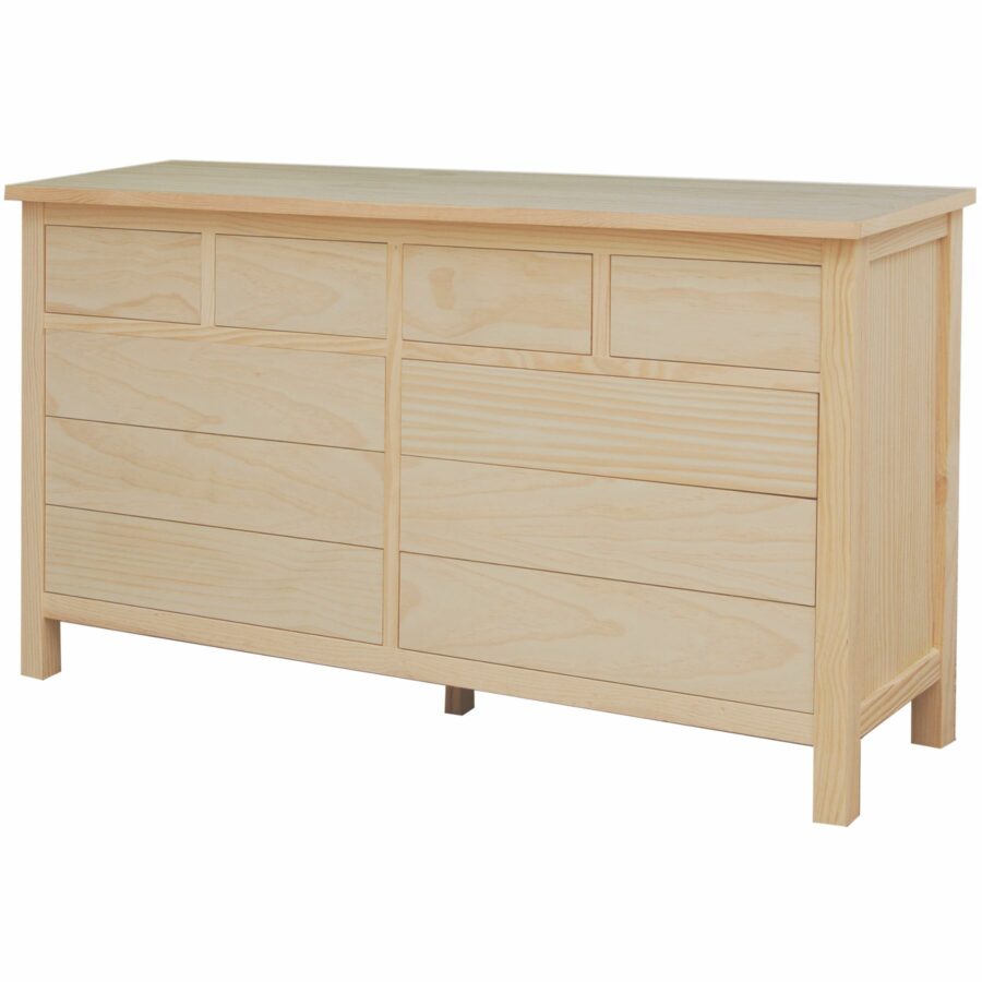 La cómoda Lorca de 140 cm, con 10 cajones, ofrece un amplio espacio de almacenamiento, ideal para mantener tus pertenencias organizadas y a la vista.