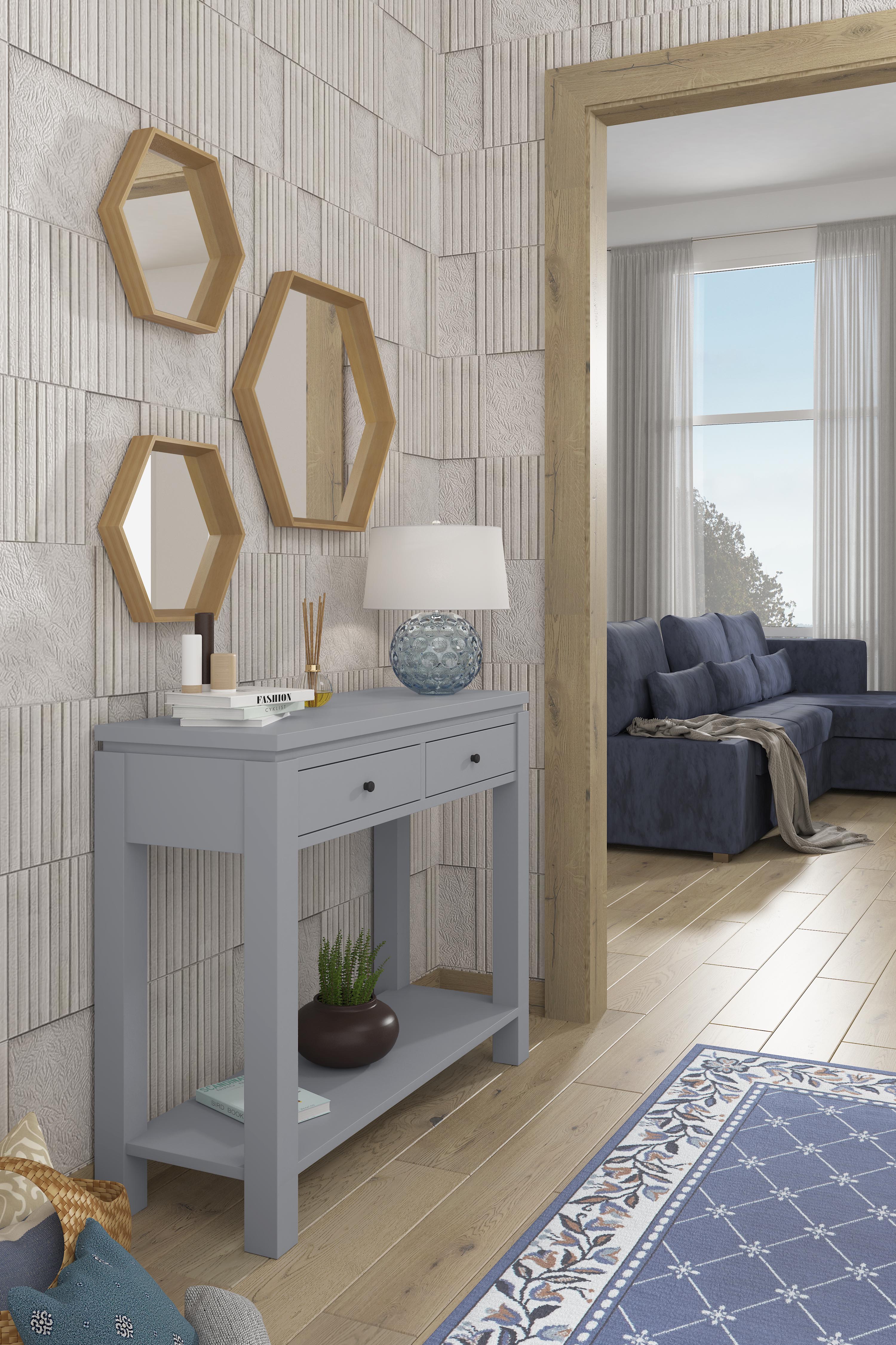La consola Preto de 100 cm, con 2 cajones y 1 estante, es perfecta para añadir un toque moderno y funcional a tu entrada o sala de estar.