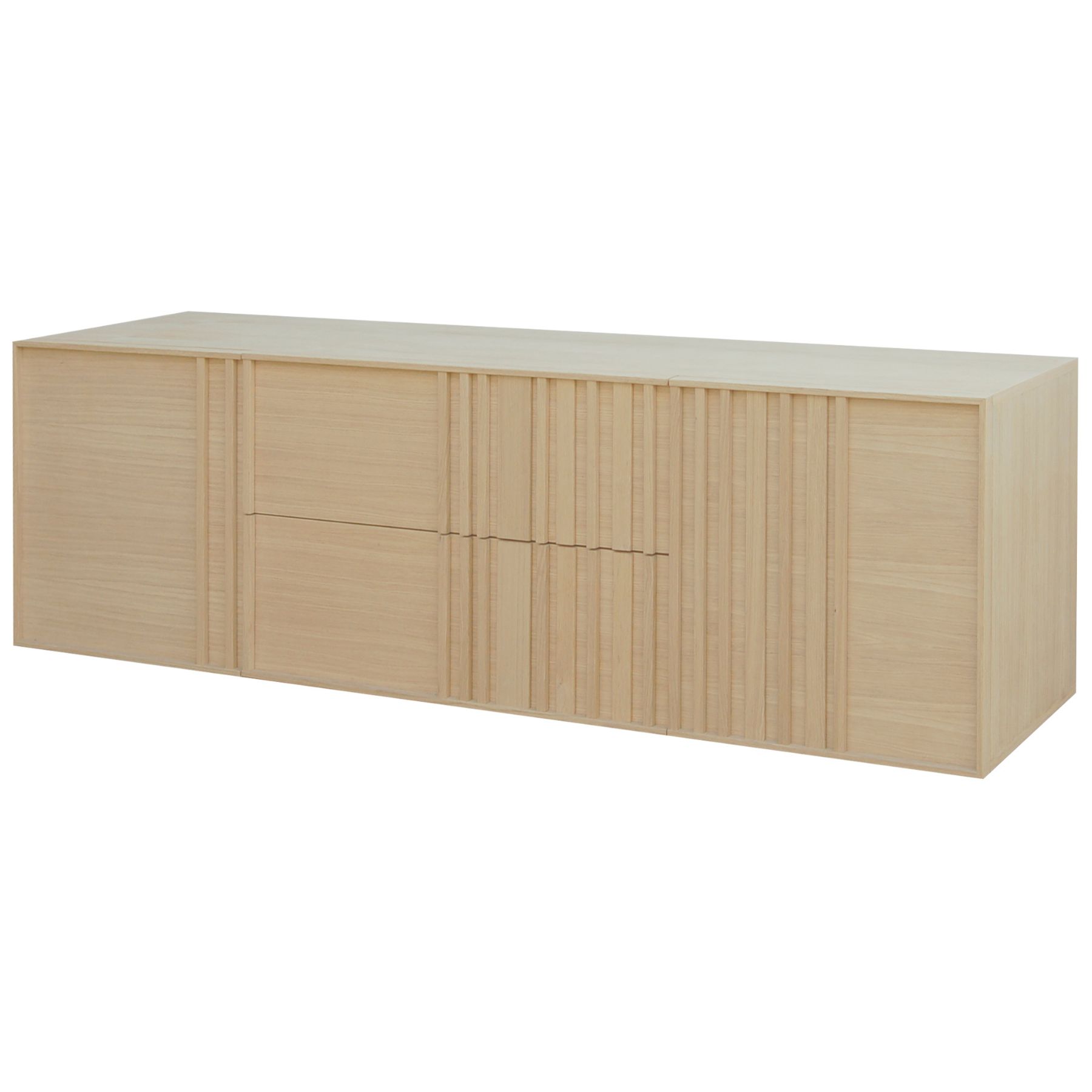Esta mesa T.V. Oaku de 180 cm combina funcionalidad y estilo, ofreciendo 2 puertas y 2 cajones para un almacenamiento práctico de tus dispositivos multimedia.